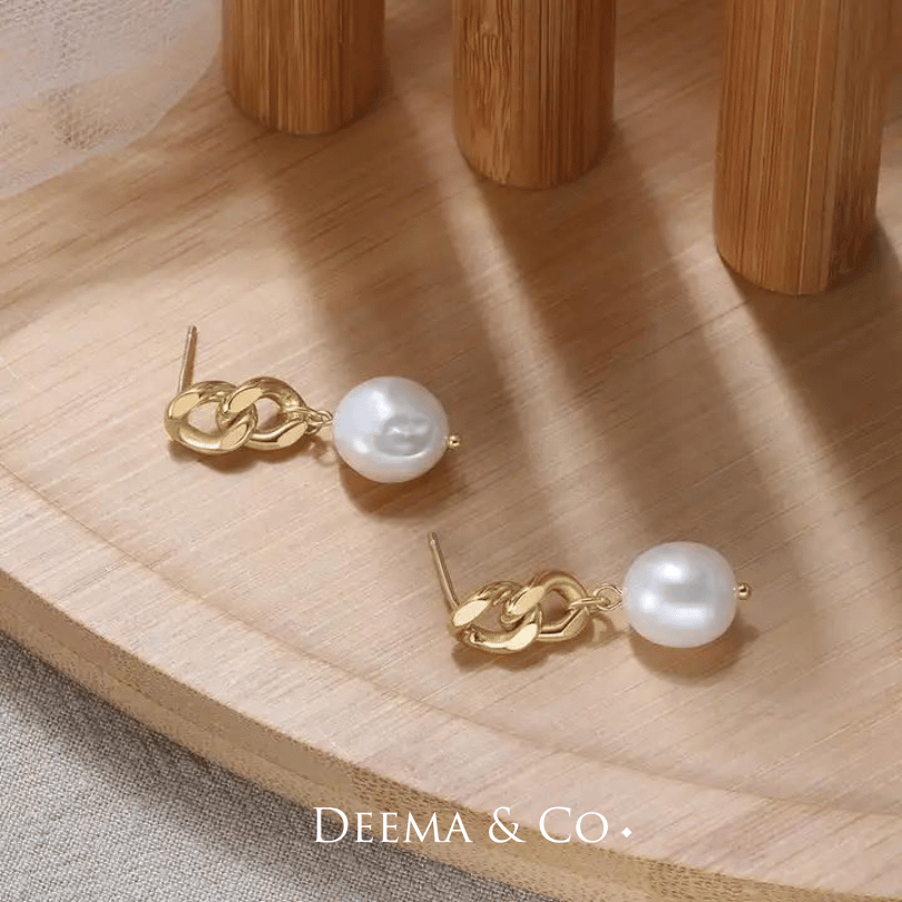 Dana Curb Chain Baroque Pearls Earrings