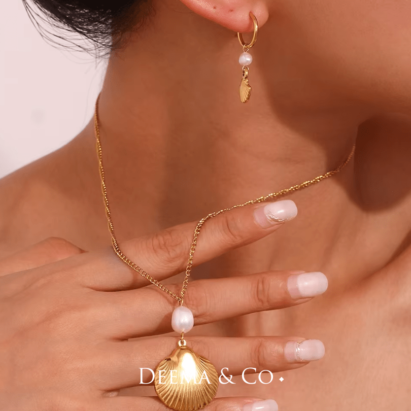 Derya Conchigilie Pearl Earrings and Necklace Set