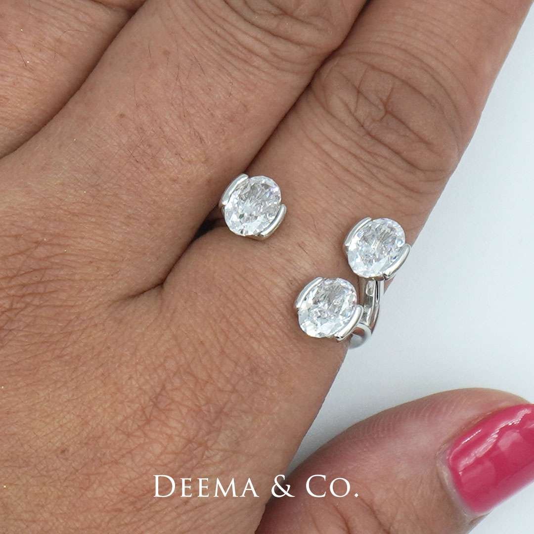 Step into the world of geometric elegance with our Geometrika Oval Crushed Iced Cut CZ Diamond Ring. This exceptional piece showcases a mesmerizing oval-cut cubic zirconia diamond, thoughtfully set to create a captivating ‘crushed ice’ effect that exudes contemporary charm. Adorn your finger with this unique ring and let its brilliance and modern design elevate your style to new heights, making a statement that’s as distinct as you are.