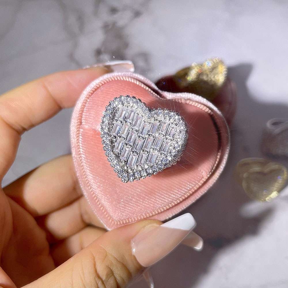 “Iced Cold Heart Pave Ring” – A dazzling, full-diamond, iced-out ring that adds a touch of glamour and sophistication to any ensemble. Perfect for stylish fashionistas and diamond enthusiasts who appreciate affordability without compromising on style. Embrace the allure of diamonds, radiate confidence, and make a fashion statement with this budget-friendly yet stunning accessory.