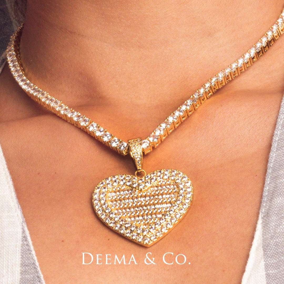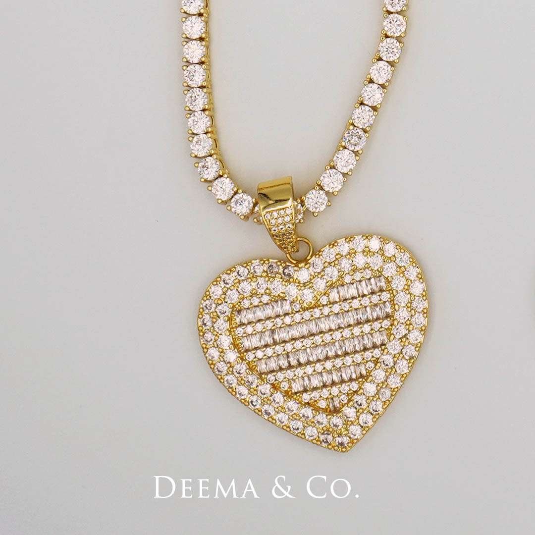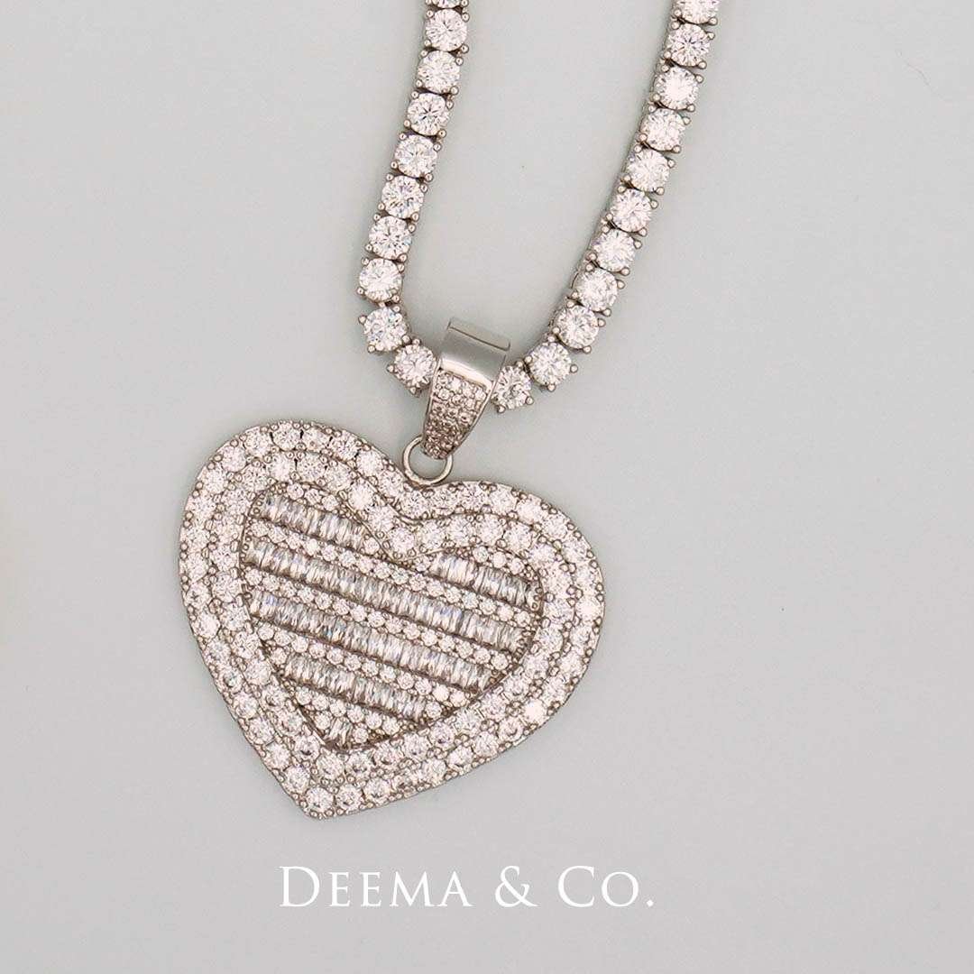 “Iced Cold Heart Tennis Chain and Pendant” – Elevate your style with this stunning, full-diamond, iced-out necklace. Designed for the fashion-forward and diamond enthusiasts on a budget, it delivers the glamour and brilliance you desire without the hefty price tag. Embrace the allure of diamonds, shine like a star, and look effortlessly chic with this affordable, fashion-forward statement piece.
